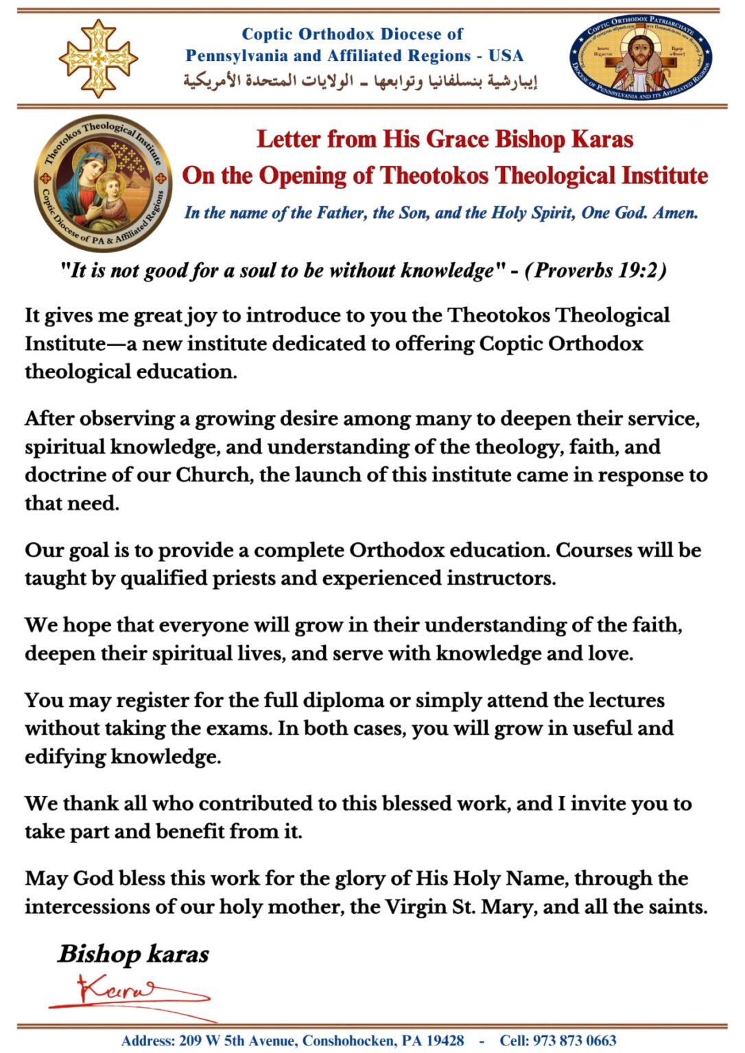 The Coptic Orthodox Diocese of PA & Affiliated Regions